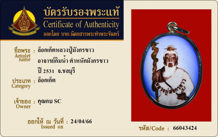ค้นหาใบการันตีพระแท้