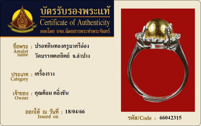 ค้นหาใบการันตีพระแท้