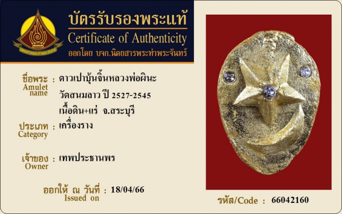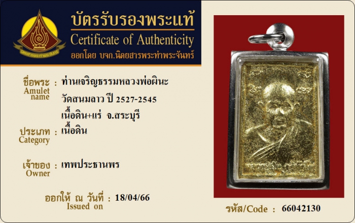 ค้นหาใบการันตีพระแท้