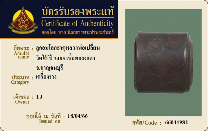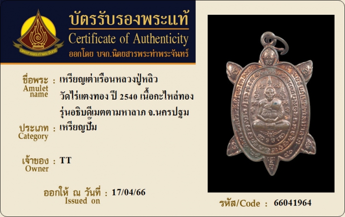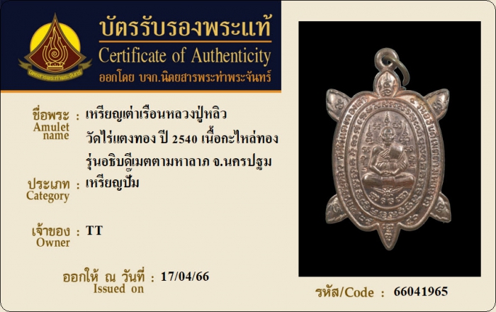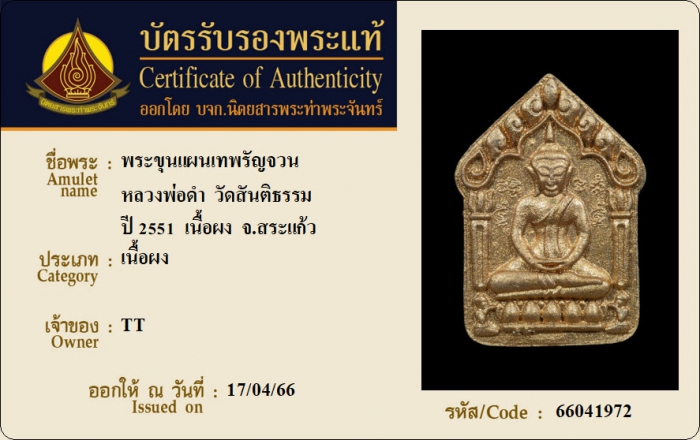 ค้นหาใบการันตีพระแท้