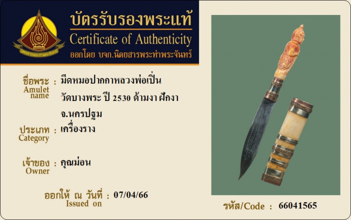 ค้นหาใบการันตีพระแท้