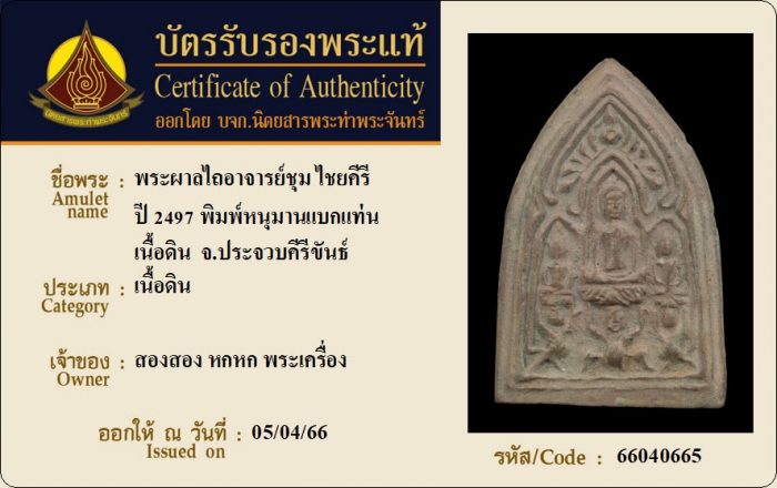 ค้นหาใบการันตีพระแท้