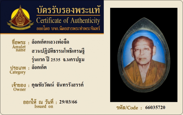 ค้นหาใบการันตีพระแท้