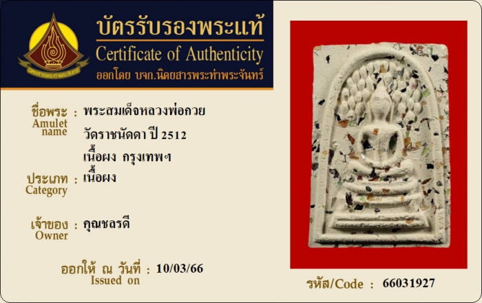 ค้นหาใบการันตีพระแท้