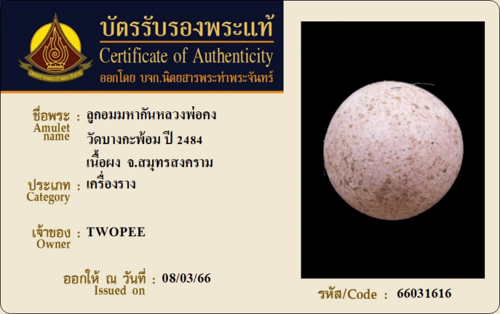 ค้นหาใบการันตีพระแท้