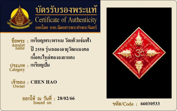 ค้นหาใบการันตีพระแท้