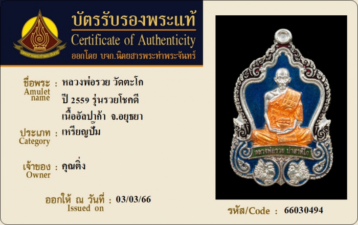 ค้นหาใบการันตีพระแท้