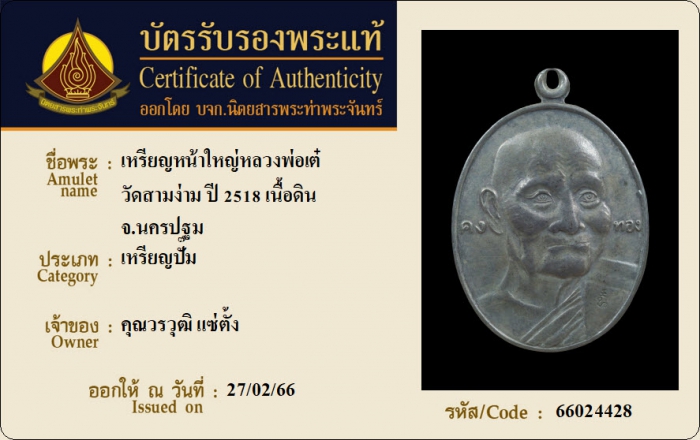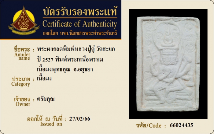ค้นหาใบการันตีพระแท้