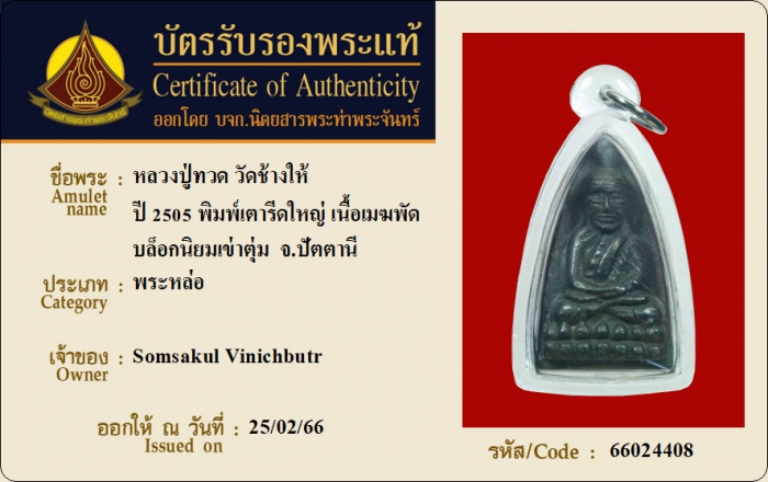 ค้นหาใบการันตีพระแท้