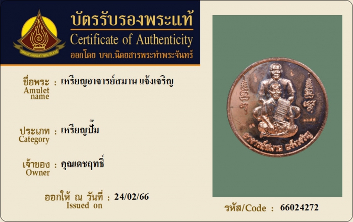 ค้นหาใบการันตีพระแท้