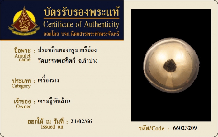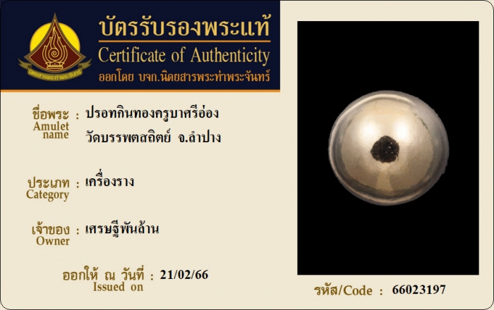ค้นหาใบการันตีพระแท้