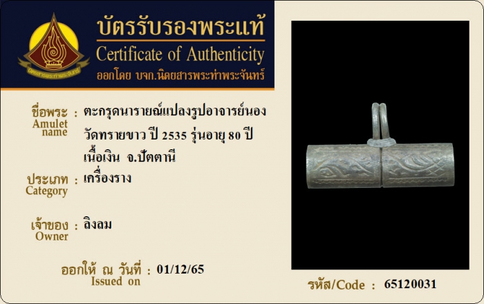 ค้นหาใบการันตีพระแท้