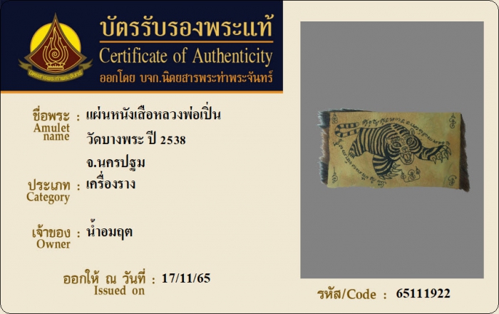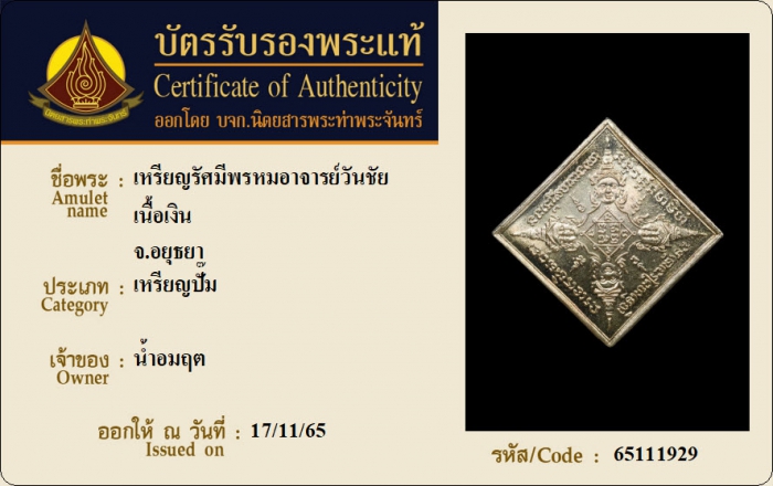 ค้นหาใบการันตีพระแท้