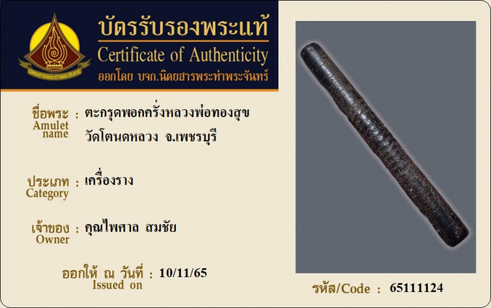ค้นหาใบการันตีพระแท้