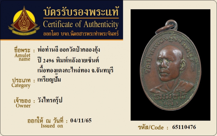 ค้นหาใบการันตีพระแท้