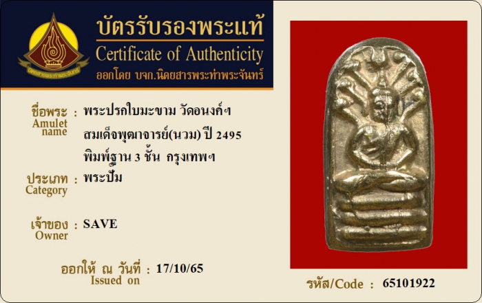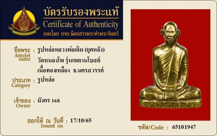 ค้นหาใบการันตีพระแท้