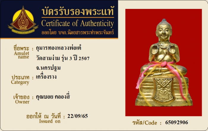 ค้นหาใบการันตีพระแท้