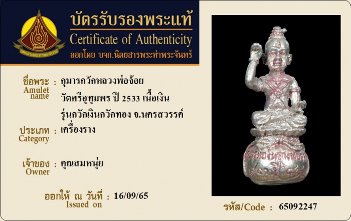 ค้นหาใบการันตีพระแท้