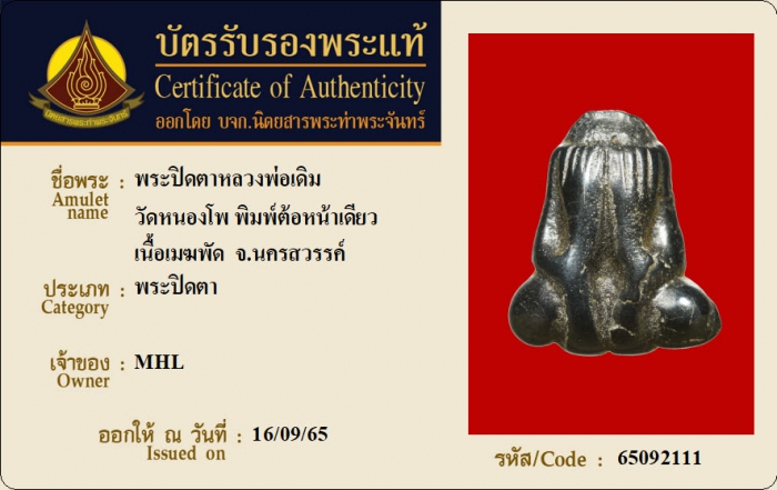 ค้นหาใบการันตีพระแท้