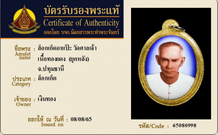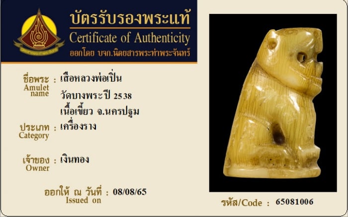 ค้นหาใบการันตีพระแท้