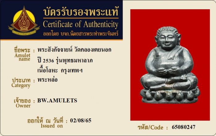 ค้นหาใบการันตีพระแท้