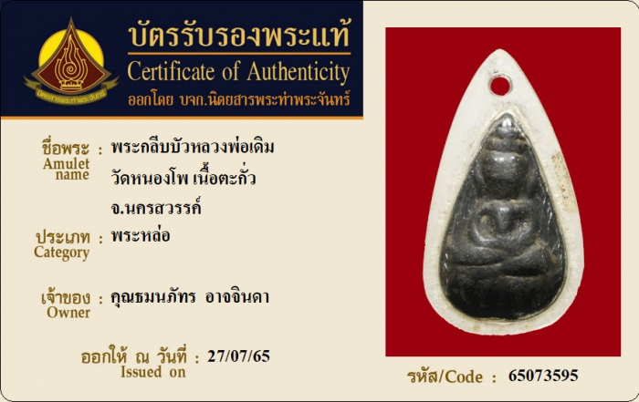 ค้นหาใบการันตีพระแท้