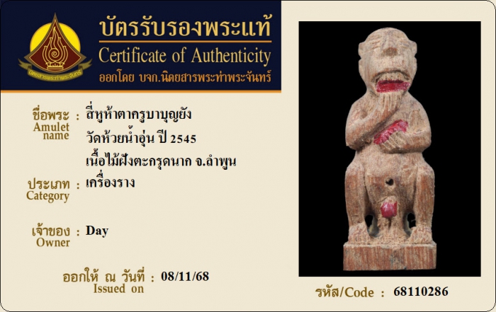 ค้นหาใบการันตีพระแท้