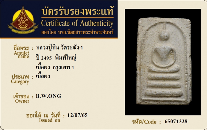 ค้นหาใบการันตีพระแท้