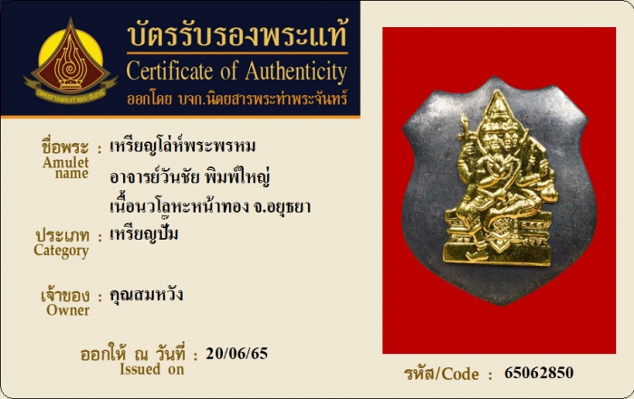 ค้นหาใบการันตีพระแท้