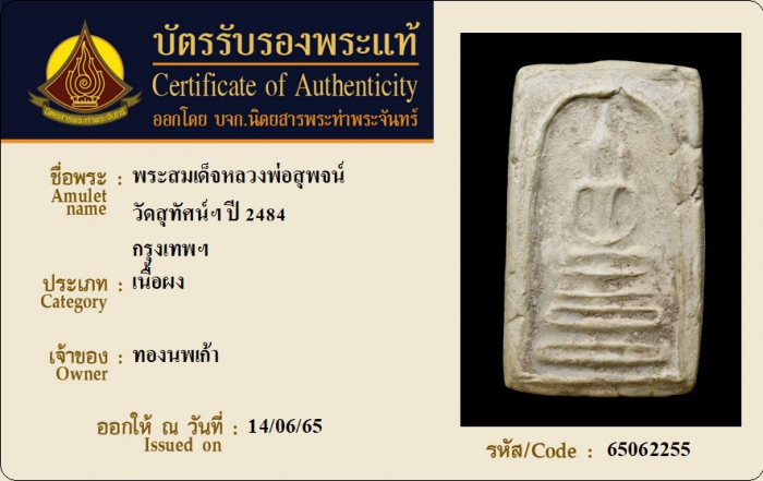ค้นหาใบการันตีพระแท้