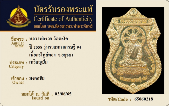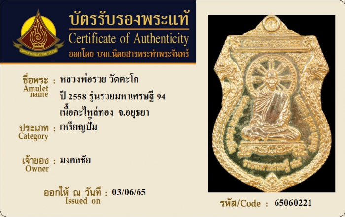 ค้นหาใบการันตีพระแท้