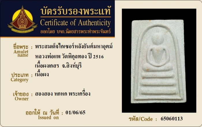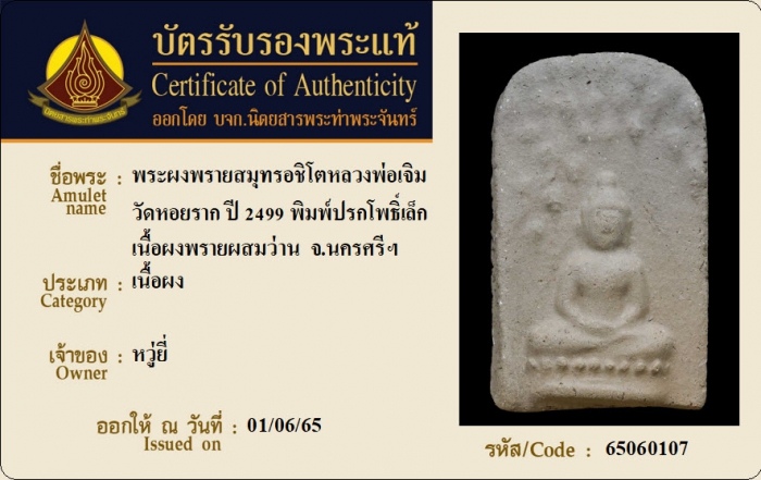 ค้นหาใบการันตีพระแท้