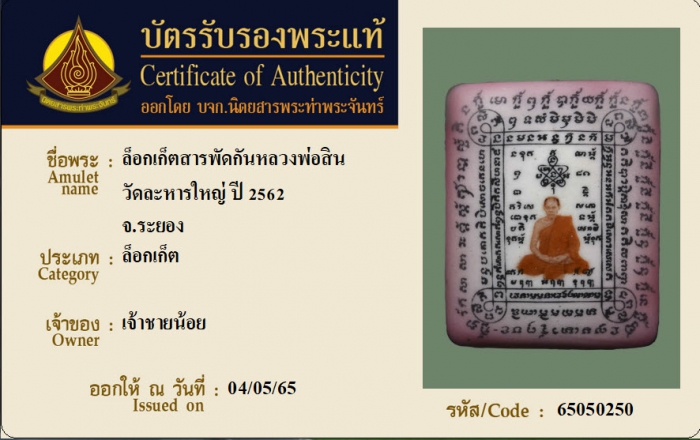 ค้นหาใบการันตีพระแท้