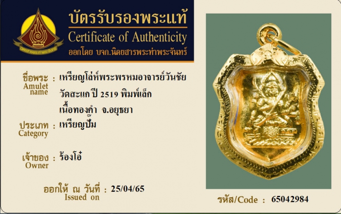 ค้นหาใบการันตีพระแท้