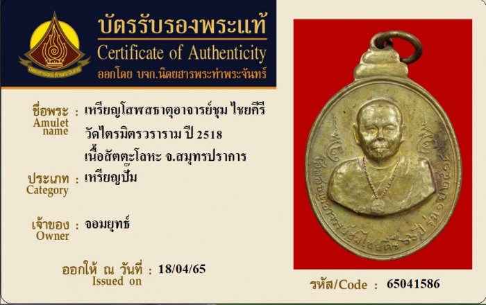 ค้นหาใบการันตีพระแท้