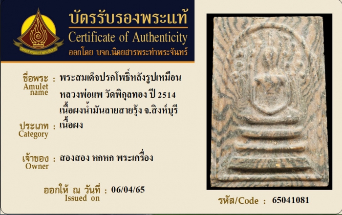 ค้นหาใบการันตีพระแท้