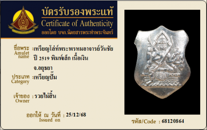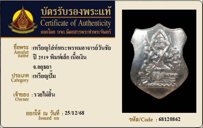 ค้นหาใบการันตีพระแท้