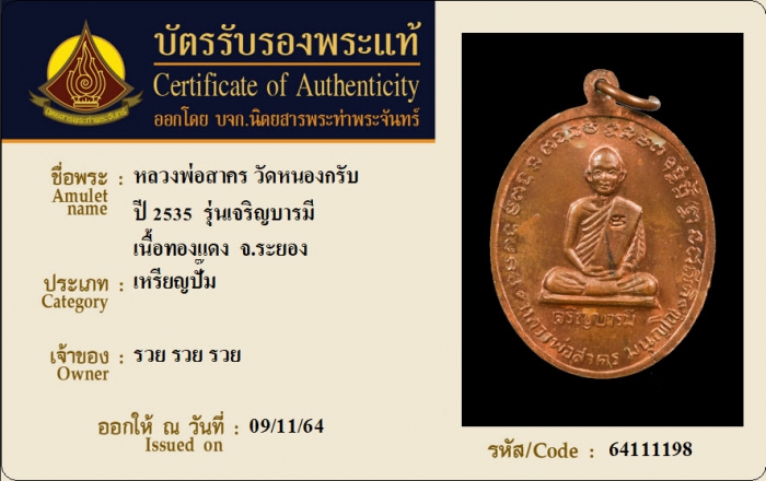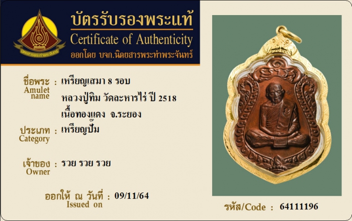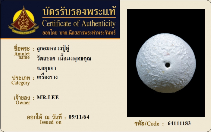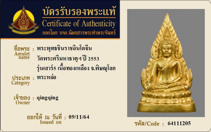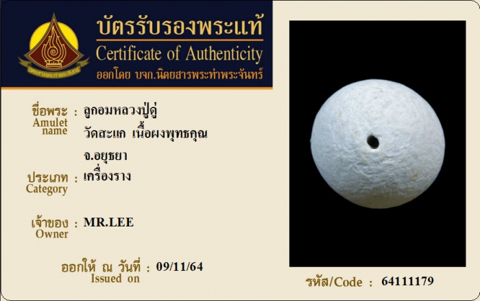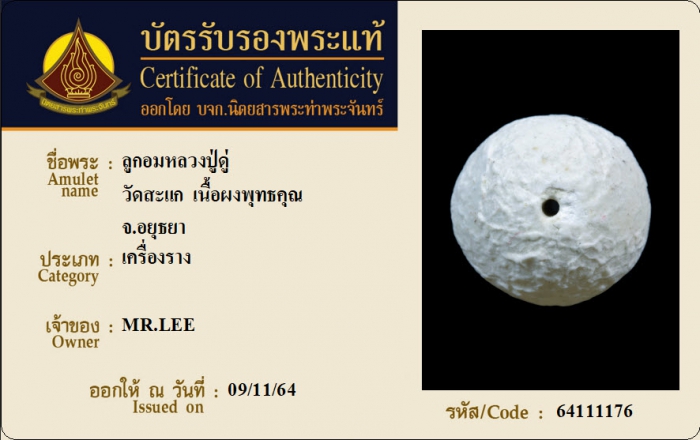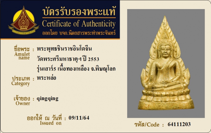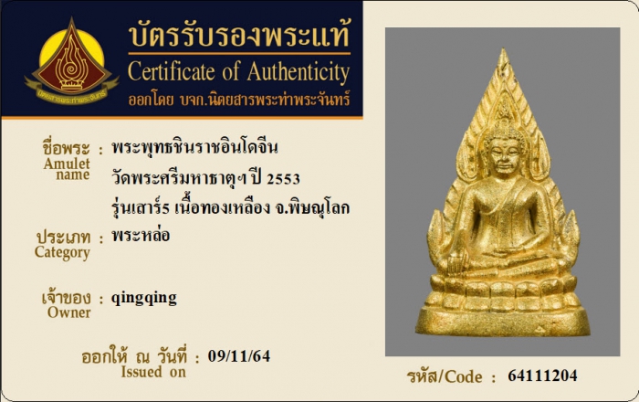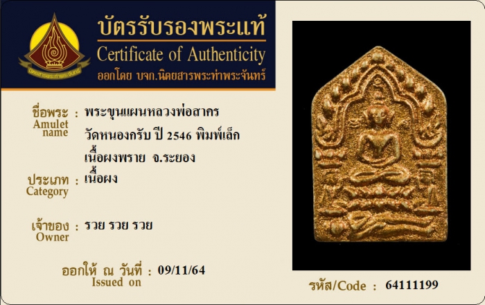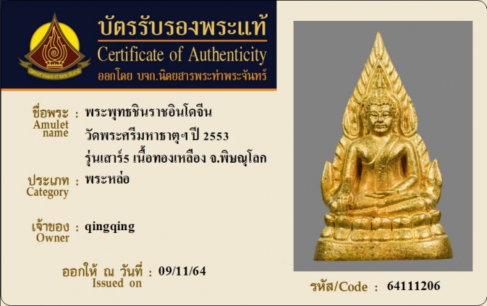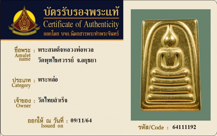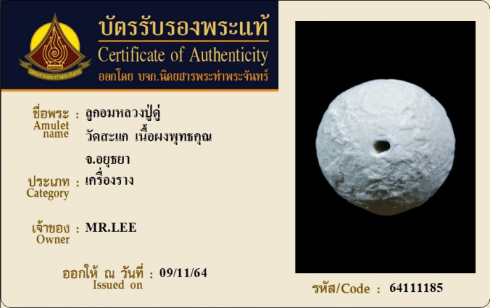 ค้นหาใบการันตีพระแท้