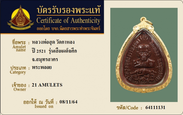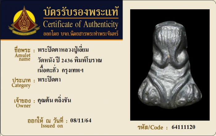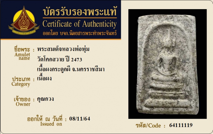 ค้นหาใบการันตีพระแท้