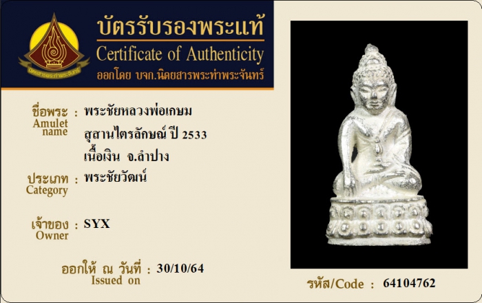 ค้นหาใบการันตีพระแท้