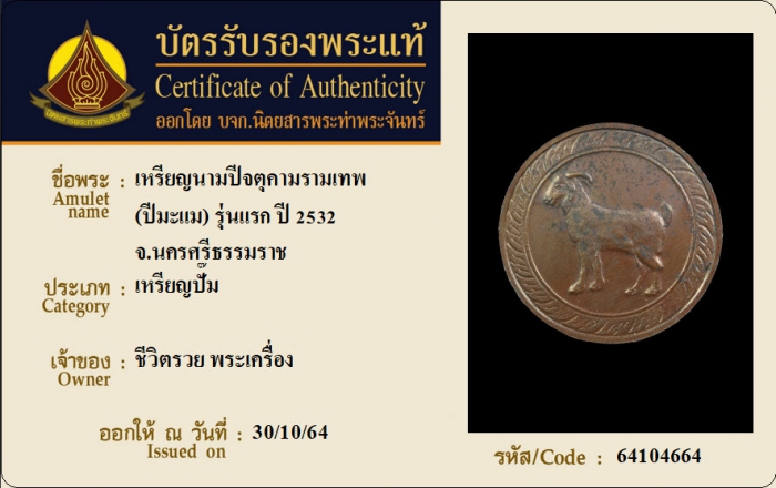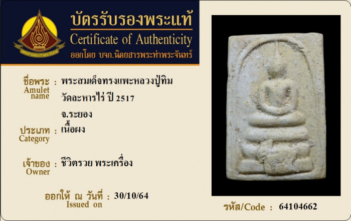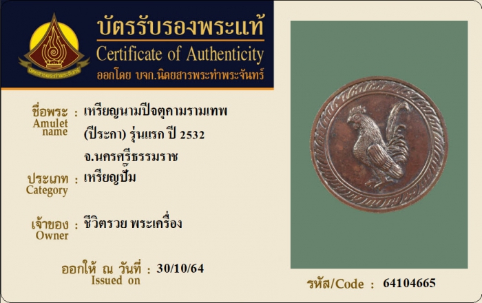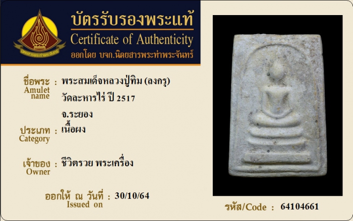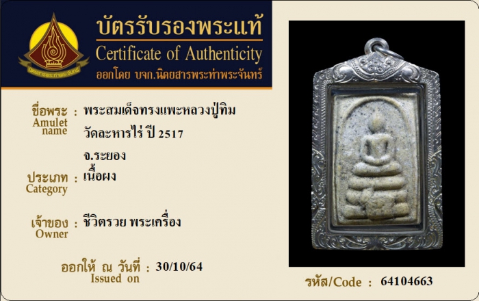ค้นหาใบการันตีพระแท้