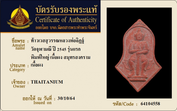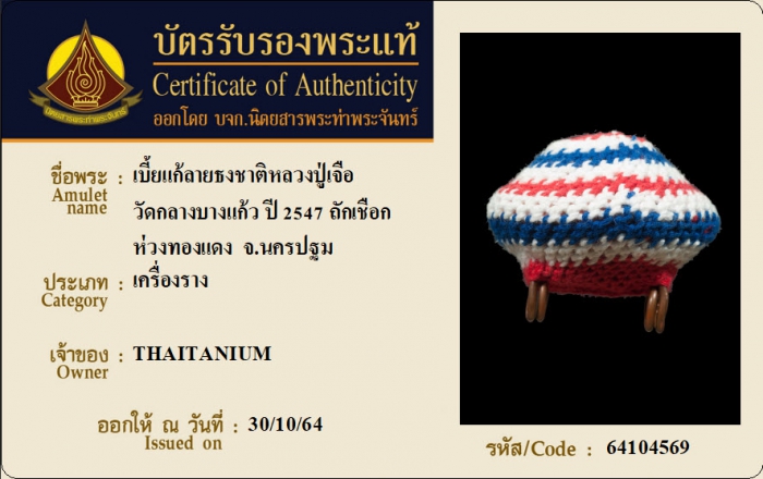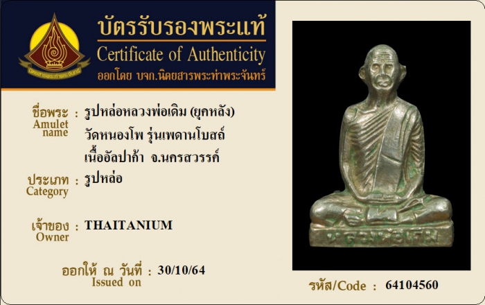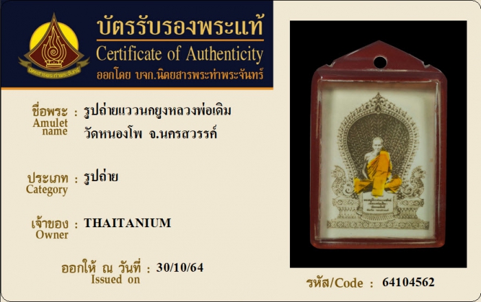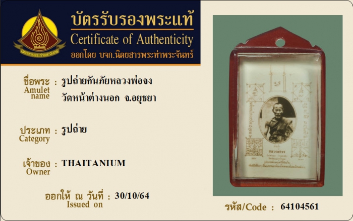 ค้นหาใบการันตีพระแท้
