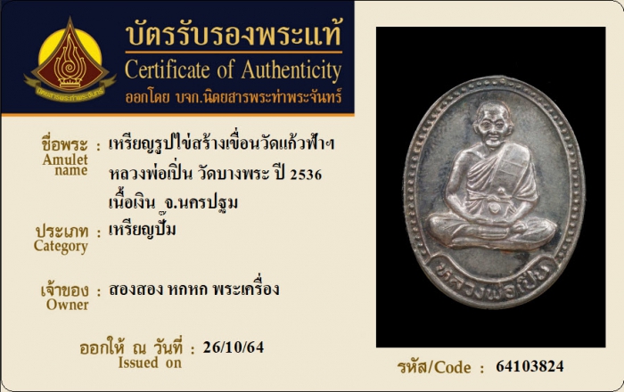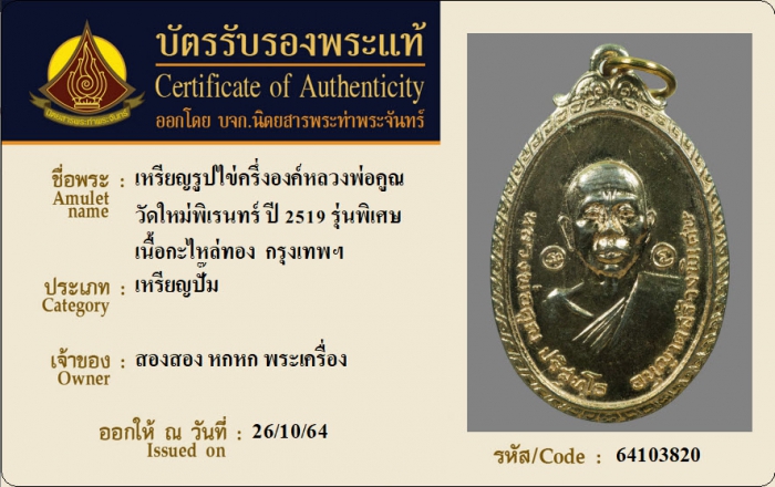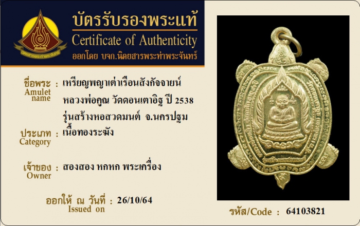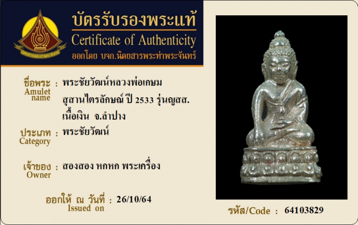 ค้นหาใบการันตีพระแท้