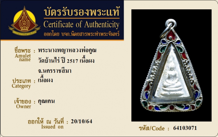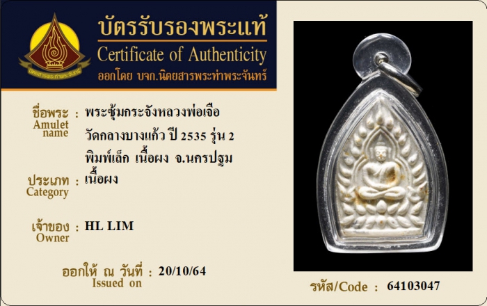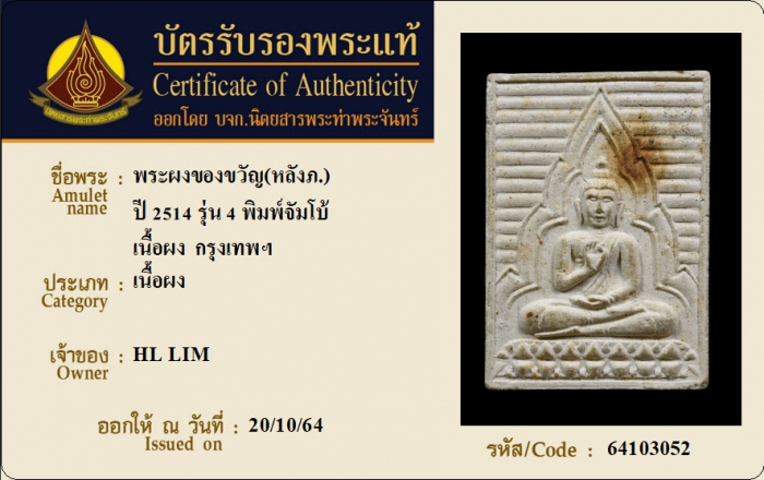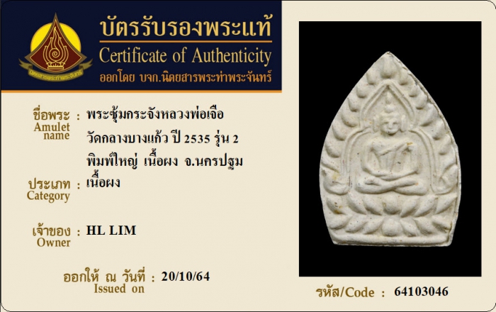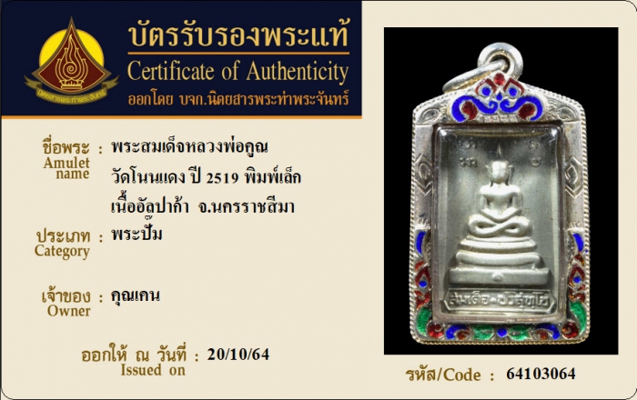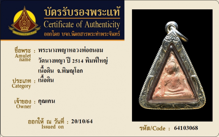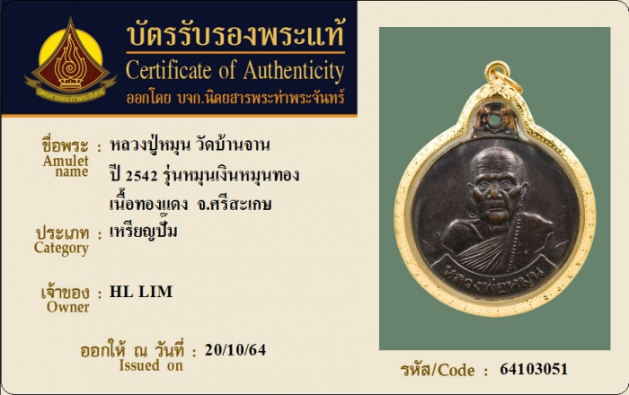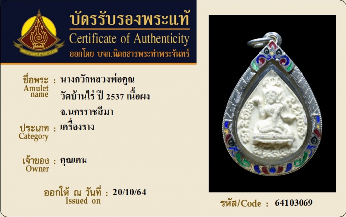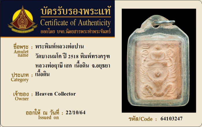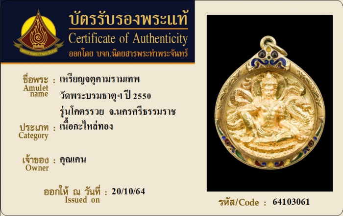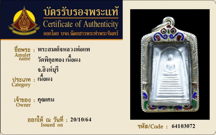 ค้นหาใบการันตีพระแท้