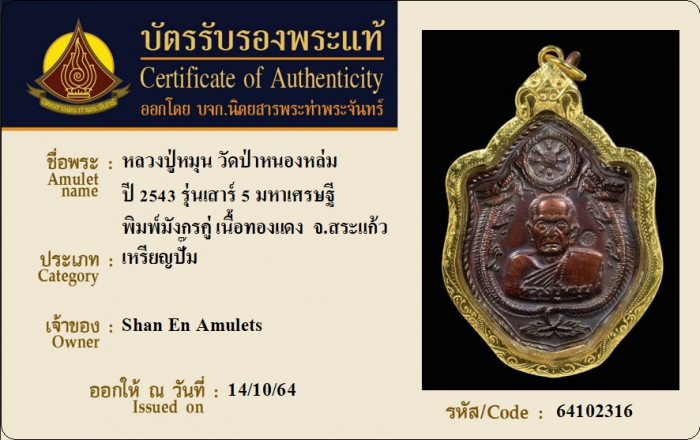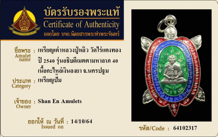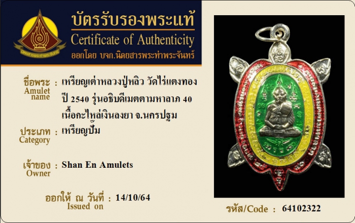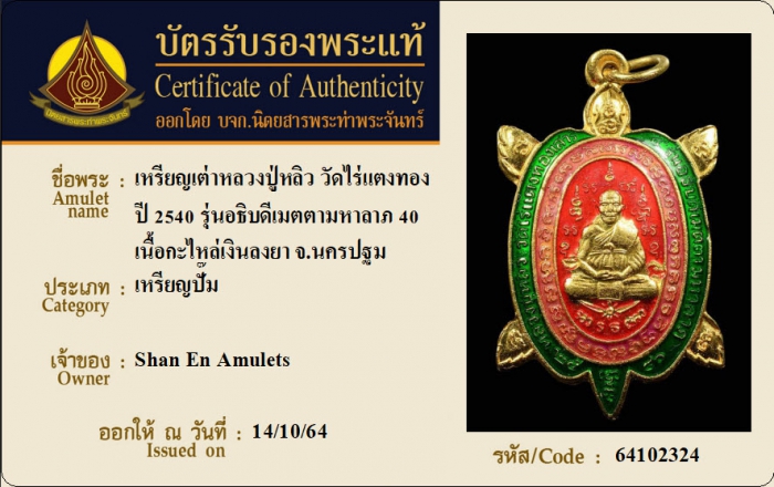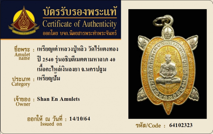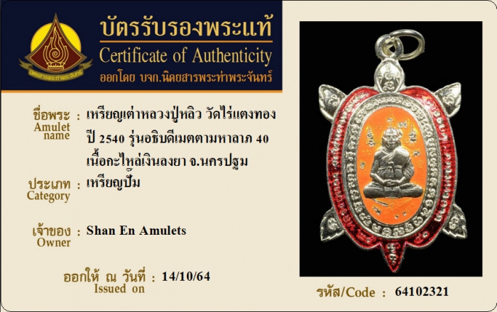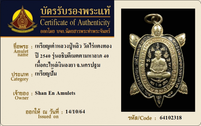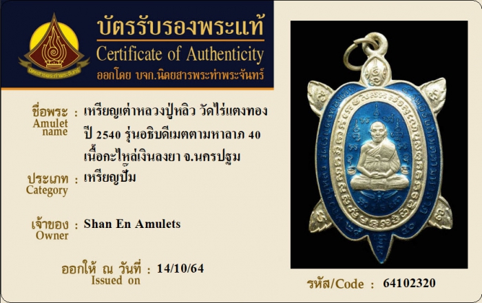 ค้นหาใบการันตีพระแท้