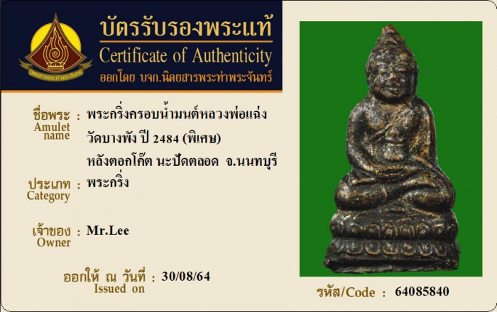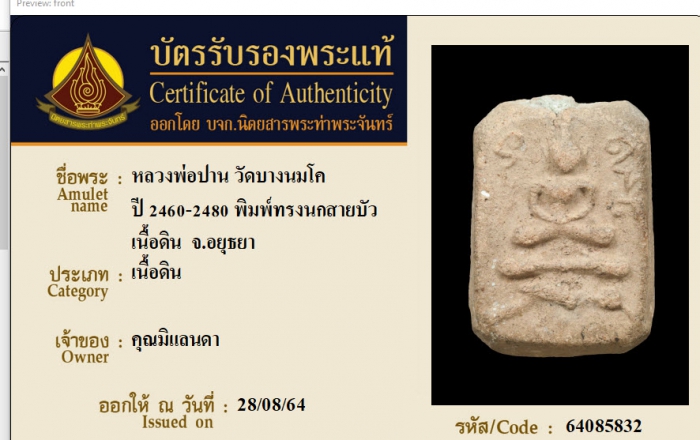 ค้นหาใบการันตีพระแท้