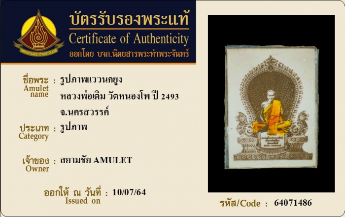 ค้นหาใบการันตีพระแท้