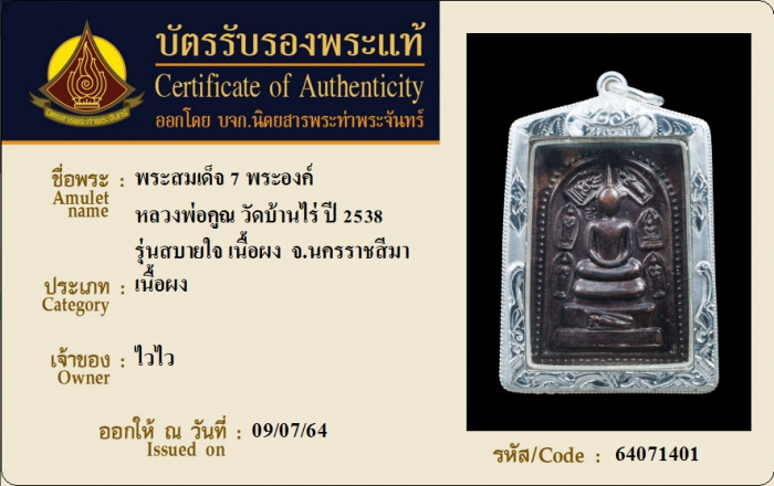 ค้นหาใบการันตีพระแท้