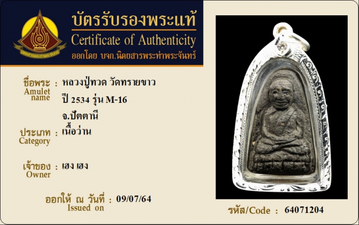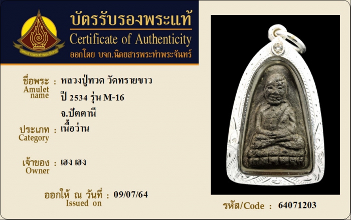 ค้นหาใบการันตีพระแท้