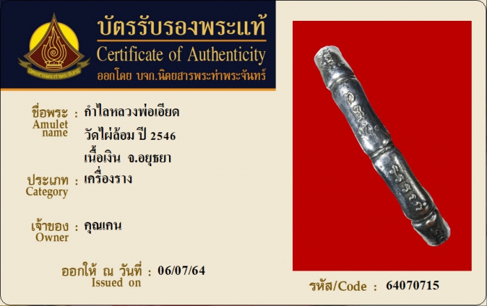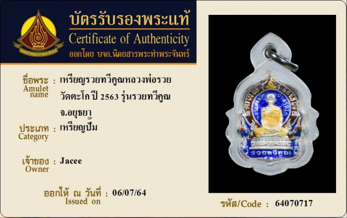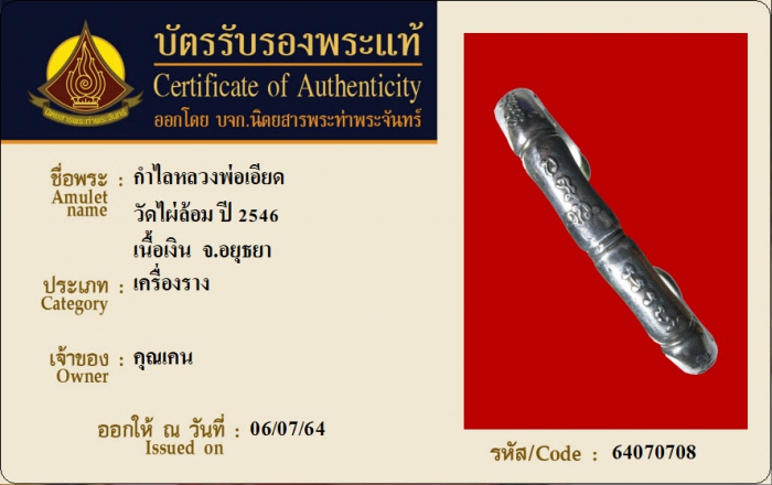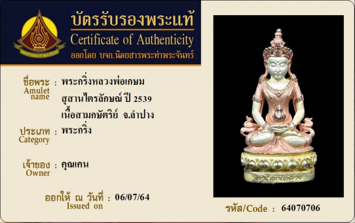 ค้นหาใบการันตีพระแท้
